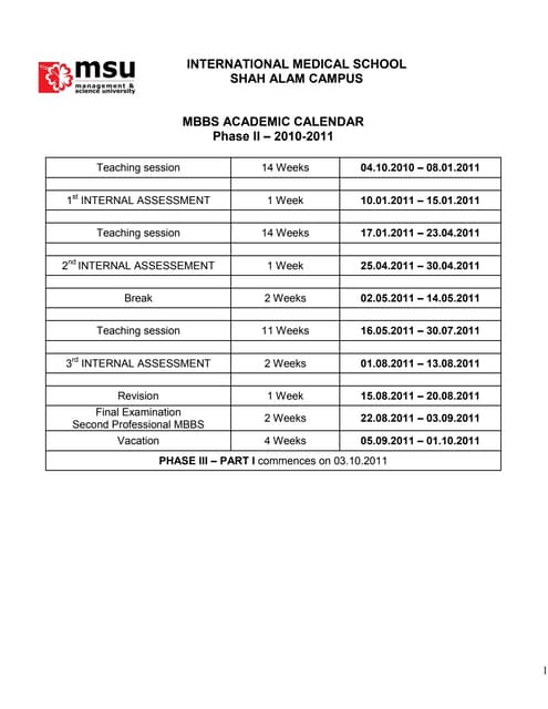 Mbbs academic calendar phase ii 2010 2011 s.alam